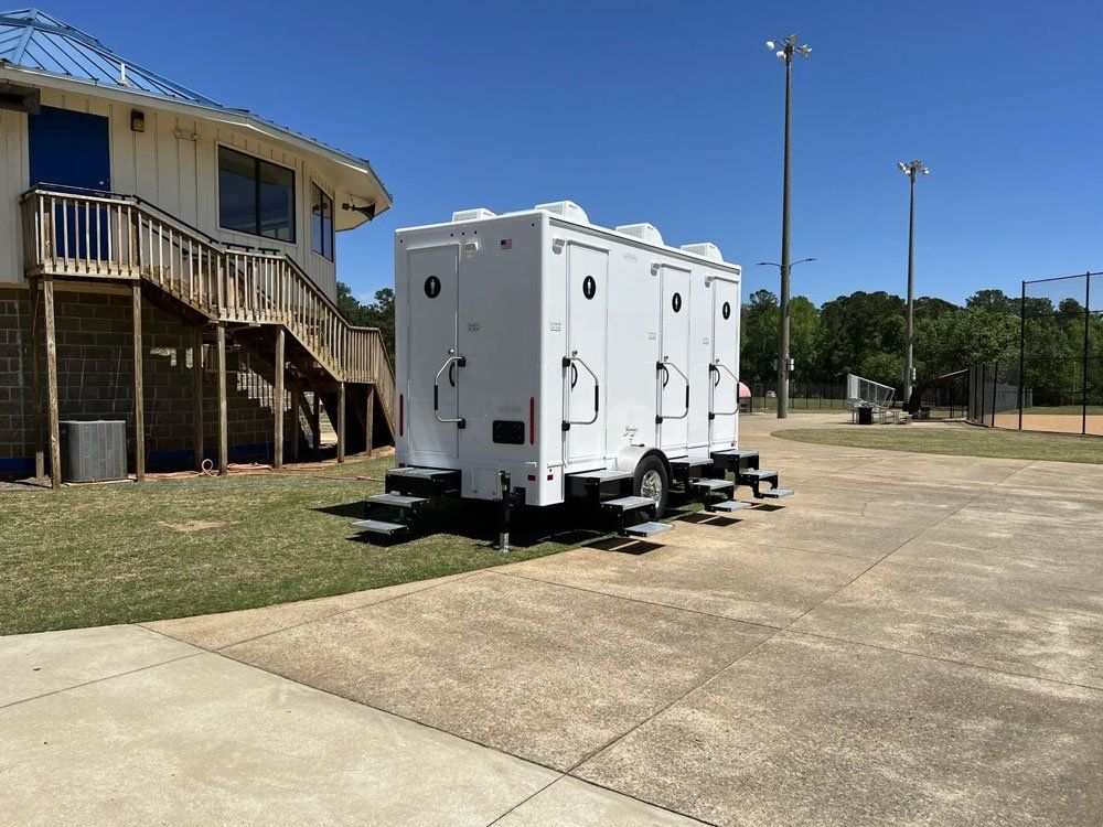 In addition to our luxury portable restroom trailers, we also provide regular porta pottys for you restroom events needs.